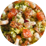 10.000 FCFATartare d'avocat crevettes tomates poivrons oignons roses.